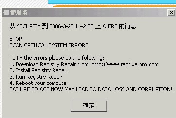 反正每隔一会就会有这样一个对话框出来....不是说下载什么修理软件就是叫我去什么网站.有高手知道这个是病毒还是系统错误吗???是否真的该去下载REGISTRY CLEAN之类的软件呢??