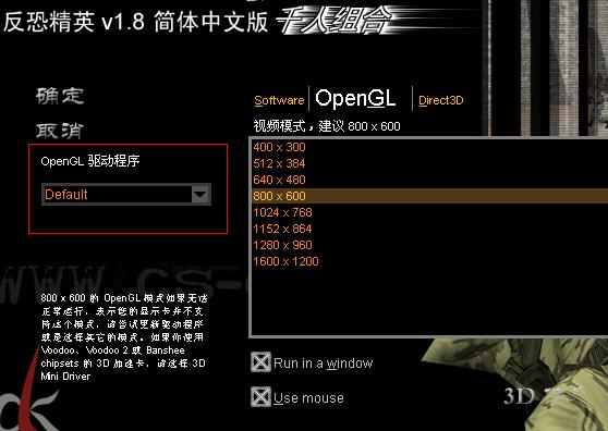 从新装了系统XP的 装了CS1.5 在游戏设置的视频设置里选了OpenGL项