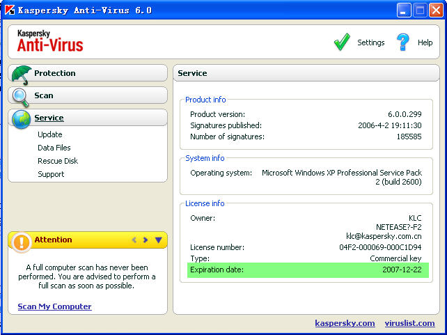 卡巴斯基正式版本6.0.0.299