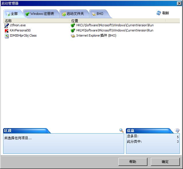 启动管理器,在这里同样很方便的管理启动项,而且能发现一些其他软件看不到的启动项哦。同样可以分类浏览。