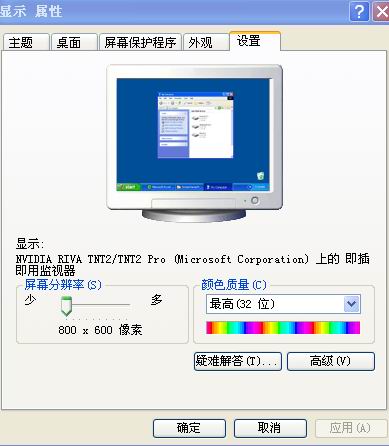 前几天刚装了个新版XP系统 桌面屏显是800*600 正常显示