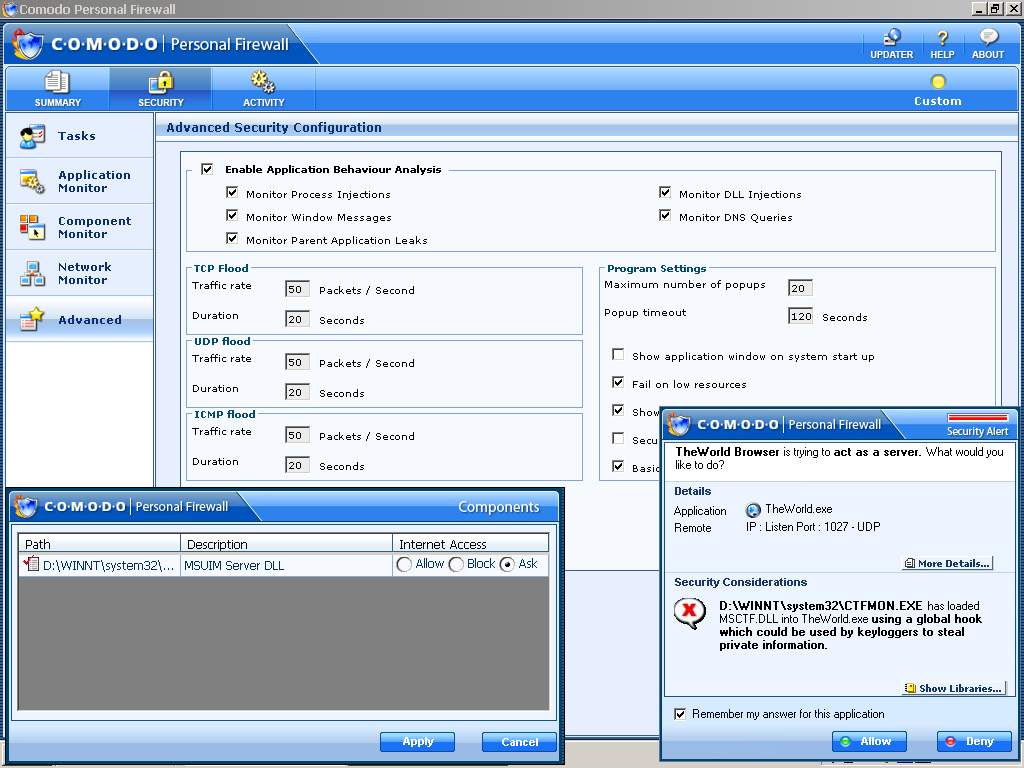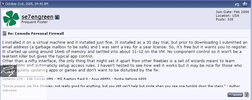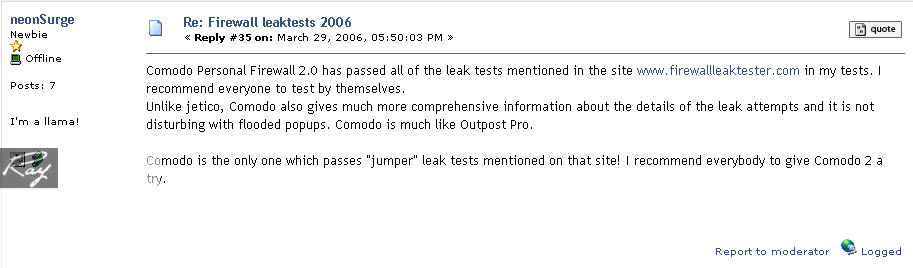 以下转贴国外论坛对comodo personal firewall评价。