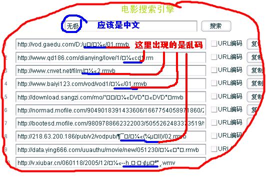 电影搜索出现的乱码问题,有人有办法吗?