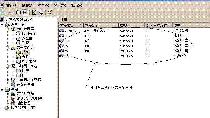 如何禁止我的硬盘共享???