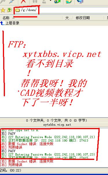 连接上了FTP 但是数据列表错误!! 看不到下载目录! 昨天还下载了一半的视频教程 今天就出错了!!