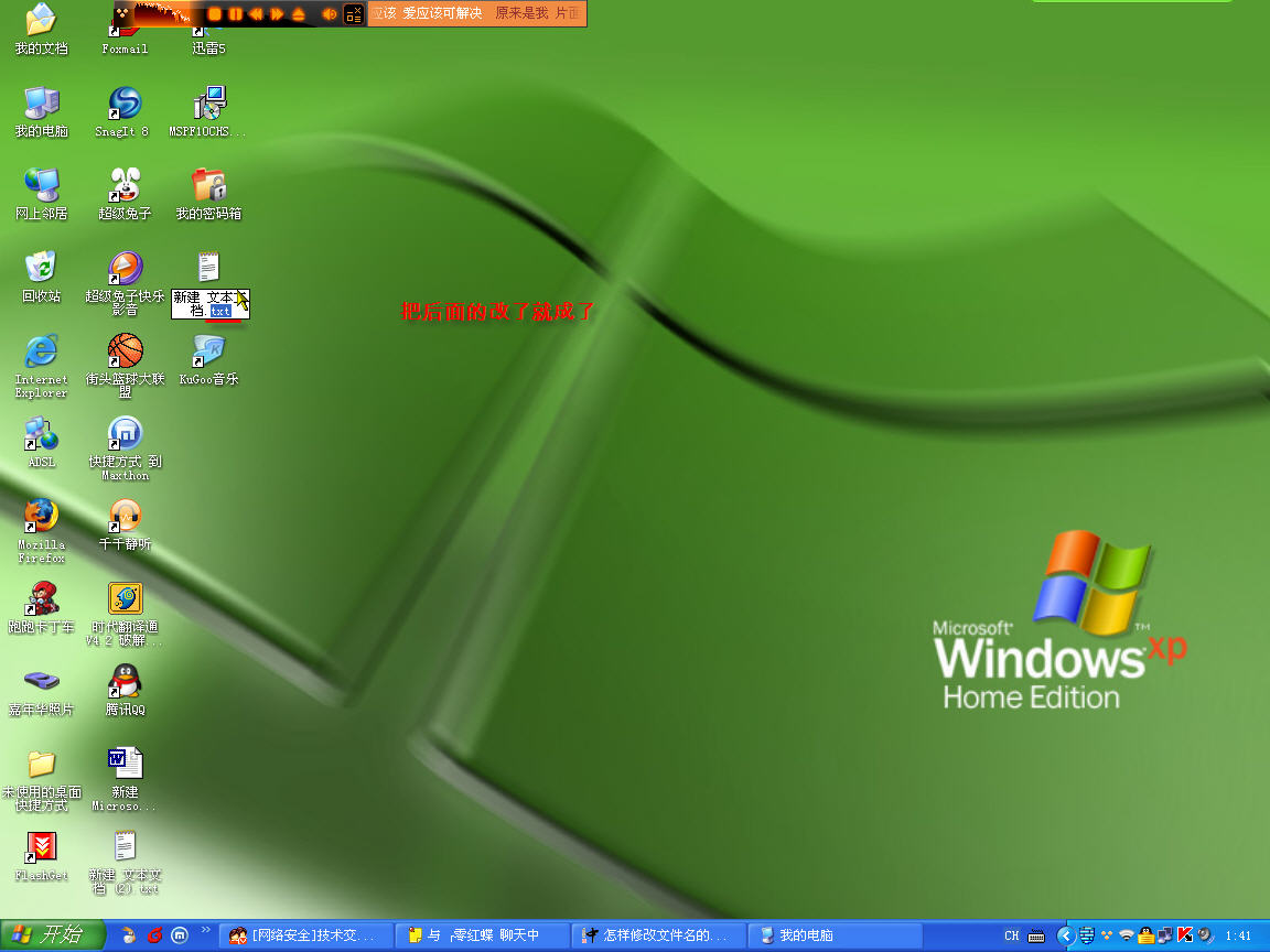 怎样修改文件名的后辍?有的文件打不开,据说要改文件名,比如JPE改为mp3,可是直接修改文件名又不行,我该怎么做?