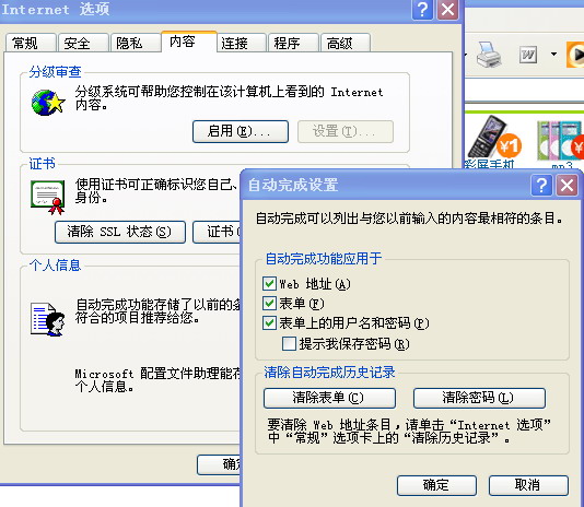 其实还有个最简单的方法,双击左键,出现哪些“下拉”如何把鼠标移到要删除的项目上,按键盘上的Delete,就可以删除那些东西。上面的方法也很好,只是有些网站还是想保存用户名和密码!!