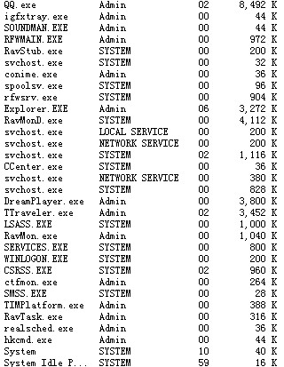 集成的声卡。显卡。TT浏览器。QQ。一点游戏。某些进程这看不出来。应该使用icesword之类的东东看。