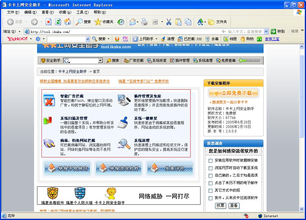 请问我已安装了正版2006瑞星杀毒软件.还需要装卡卡上网安全助手吗?两者有否重复?