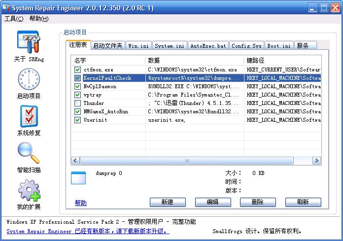 我运行SREng在我电脑的启动项里有一项很特别,大小为0不知道能不能不让它启动这项或直接删掉,而在MSCONFIG里却没有看到这项,不知道是我的设置问题还是别的什么问题,向各位高手请教,帮我解决一下,先谢谢啊