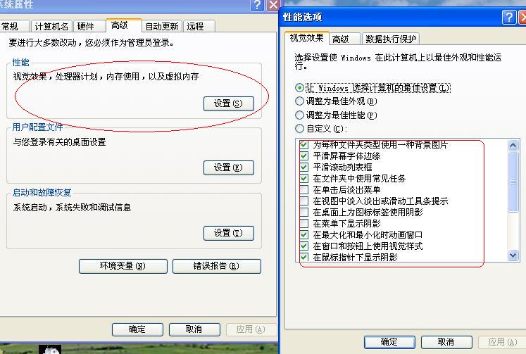先桌面右键-属性-桌面-自定义桌面-Web和锁定桌面项目前勾都去掉,再接着我的电脑--右点--属性--高级--性能--设置--自定义---桌面图标标签显示阴影前面打钩确定即可