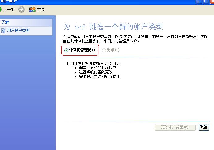 我创建了一个新的账户名,怎么没有管理员权限呀~~急急