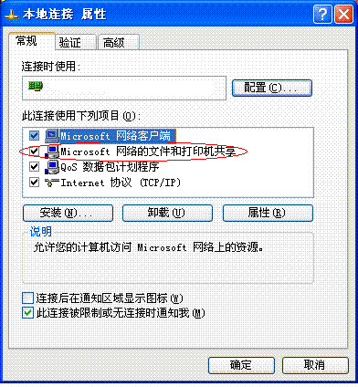 十二、“本地连接”→属性→常规,检查是否安装了“Microsoft网络文件和打印机共享”、“Microsoft网络客户端”以及TCP/IP协议;