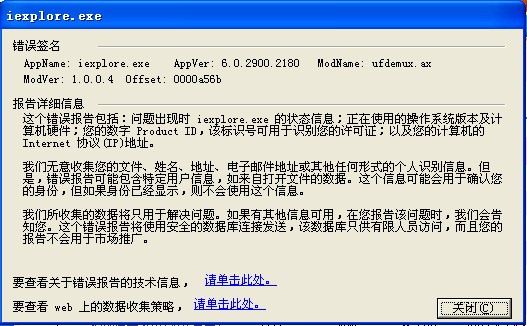 【求助】为什么我进入移动的彩铃网站http://12530.gmcc.net点击就会发送"错误报告"而在别的网站上就不会!