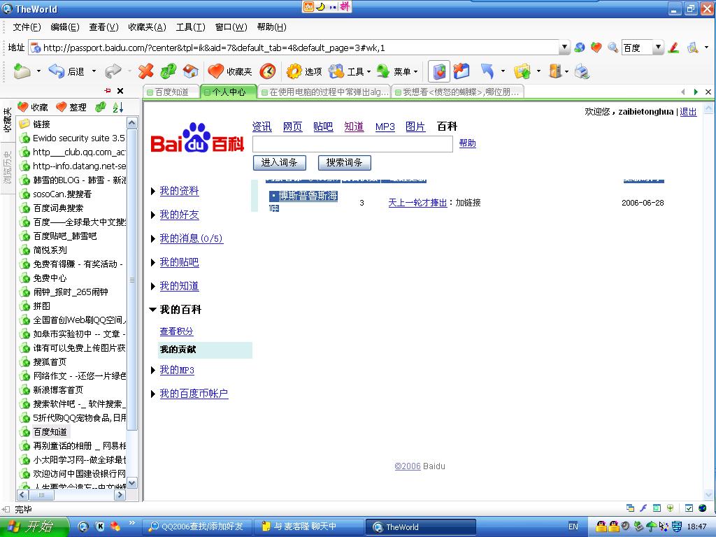 用The World 浏览器看百度百科的百科贡献和积分,出现这种情况,怎么办