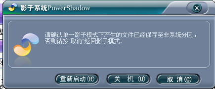 · 当新病毒爆发而暂时没有有效的方法对付的时候,可暂时进入Shadow模式放心工作。当 试用某些新软件时,可以进入Shadow模式安装,如不想继续使用,退出Shadow模式后程 序恢复到安装软件之前状态,免去了卸载软件的麻烦。
