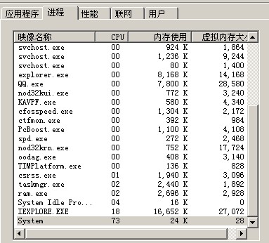 我的爱机这几天,system进程老是点用cpu 70%~~100%,搞到卡死了,用最新卡巴,瑞星,NOD32,ewido查毒,无发现毒。