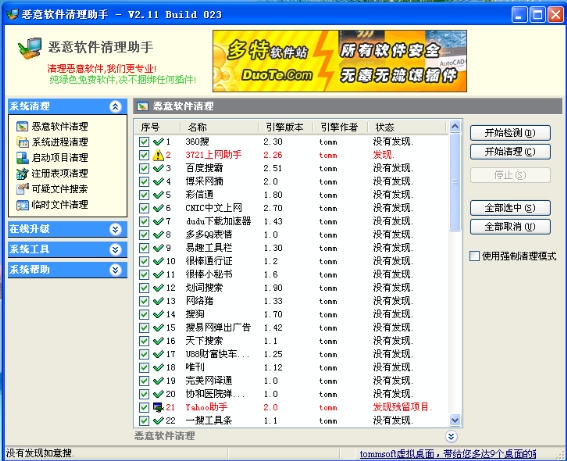我用恶意软件清理助手即使在安全模式下强行清除,最终还是没有吧3721和YAHOO助手彻底清楚掉!请帮帮忙!