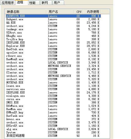 另外也请高手指点我的机子进程和服务中那些可以关掉,我的机子是512内存,但一开机这些进程就占用了212兆,太让我失望了,尤其是瑞星,占用那么大内存,有没有什么办法可以让他少启动点东西啊!!谢谢,日志见下面