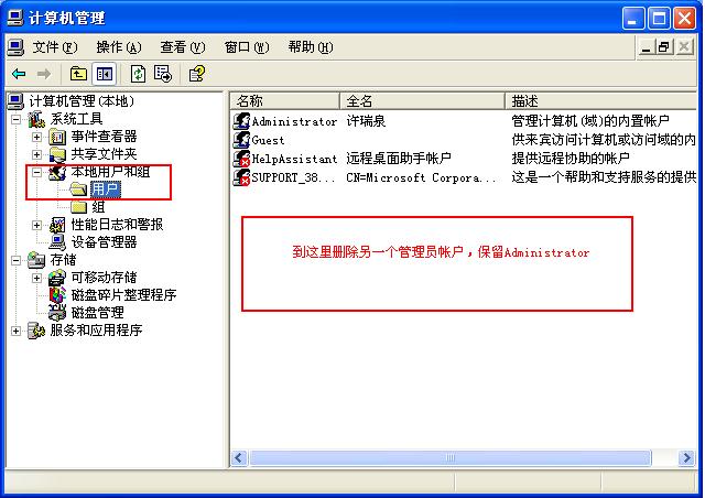 今天用瑞星扫描提示有如上问题,打开帐户用户发现自己设置的一个用户名变成了计算机管理员,用更改账户想把它改为受限用户,可是无法更改,请高手帮助解决,谢先!