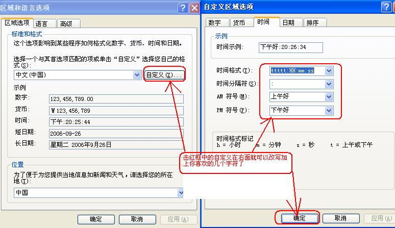 在“开始”→“控制面板”→“区域和语言选项”中在→参见如下图红框中所示: