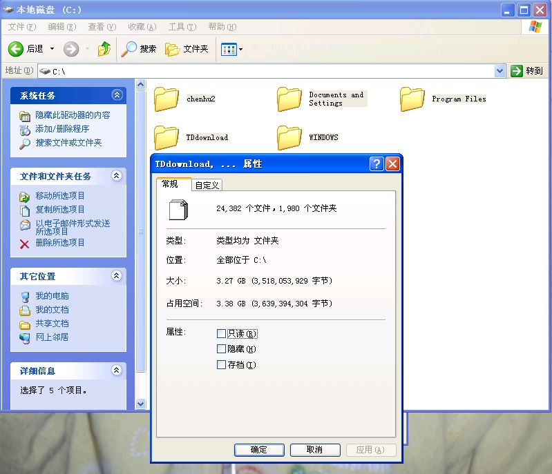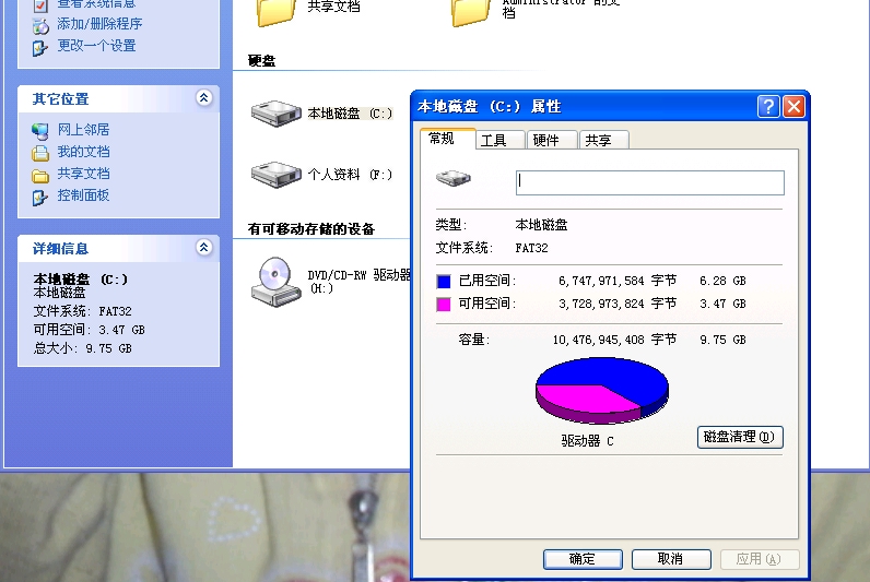 为什么我的硬盘(C盘)文件夹总共加起来才3.28G,但是系统提示为已经用了6.28G,是什么原因呢?请指教,谢谢。