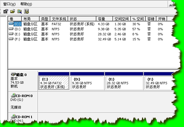 另外说明一下, 我的系统是番茄花园2.8的,C盘是FAT32格式的,D.E.F盘是NTFS格式的。请各位高手帮帮忙吧!!