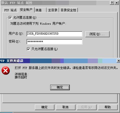 现象为"打开FTP服务器上的文件夹时发生错误.请检查是否有权限访问"如图.