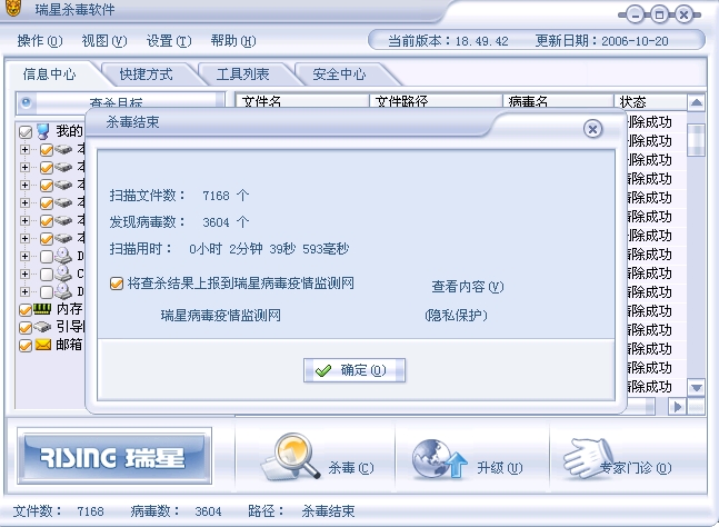 我下载来试了一下才查出3000个病毒  我是用瑞星
