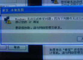 办公室的几台电脑,就我的机子出现故障,重启后上不了网了,网络连接出现黄色感叹号,提示:本地连接受限制或无网络连接  什么设置都没动,系统是自动分配IP和DNS的,点击修复连接提示无法续订IP地址.