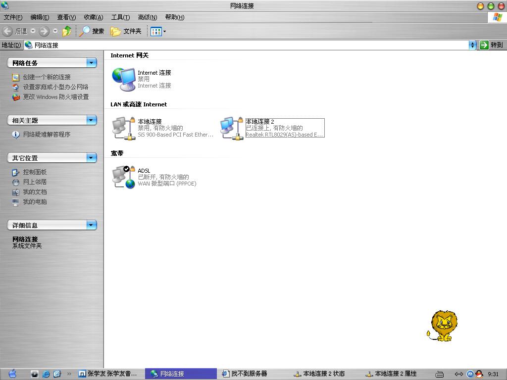 配置好2台机器的IP地址,不用设置网关就可以了,删除"宽带ADSL".已经启用路由这个就没意义了.