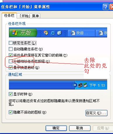 如果感觉不方便,可右键在任务栏单击,选属性--任务栏,取消‘分组相似任务栏按钮’的兑勾。