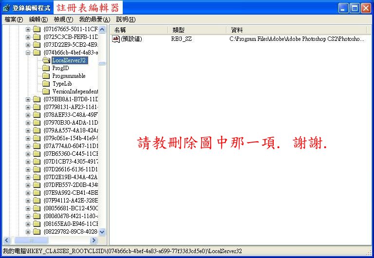 已在添加/删除.删除了Photoshop CS2. 想再删除Photoshop CS2 注册表里的相关信息.
