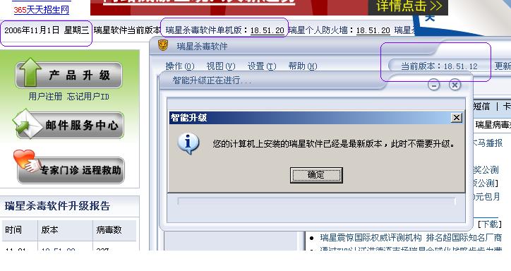 今天看到主页上最新版本为18.51.20可是无法升级到最新的,怎么也说你的版本为最新,可是当前版本为18.51.12。是瑞星要升级到2007了吗????????????