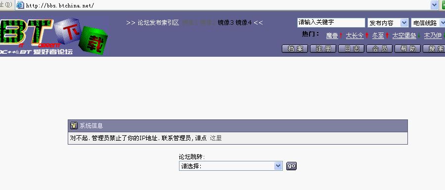 刚才去BT爱好者论坛 - powered by vBulletin论坛下今天NBA的比赛,可是一进去就这样