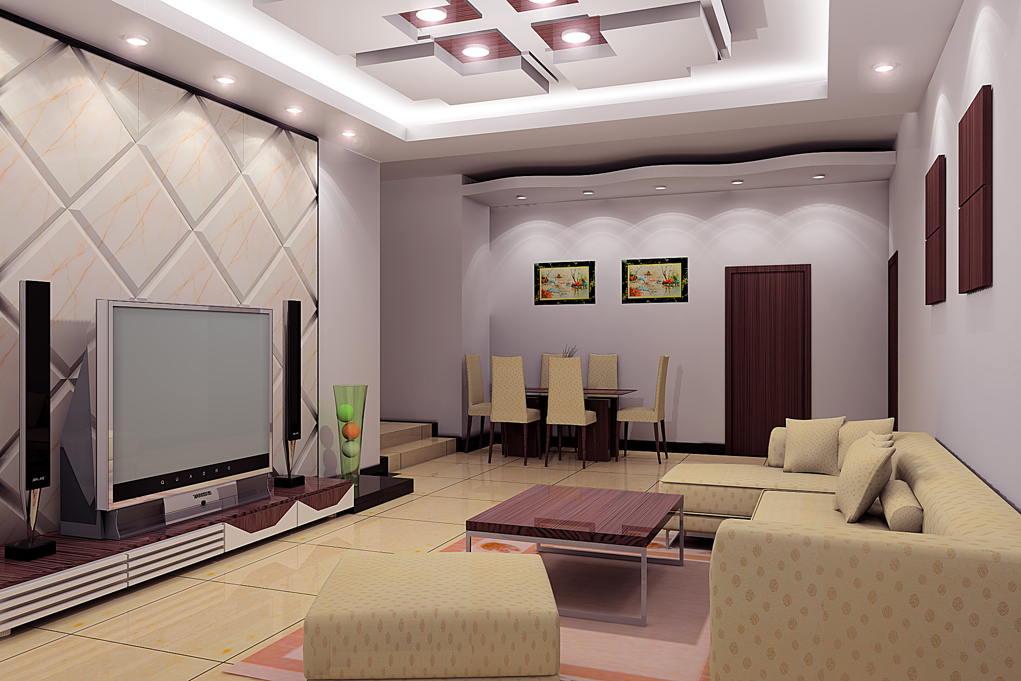 2\餐厅问题,餐厅可以和客厅打个薄的隔断.这样看上去会更有层次感.