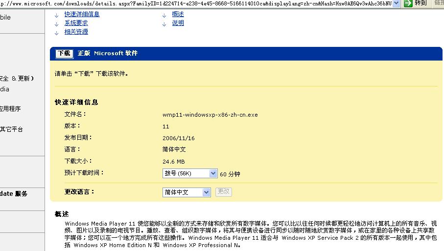 http://download.microsoft.com/download/3/9/6/39691B06-7BFA-4736-89E4-2738E6023B6C/wmp11-windowsxp-x86-zh-cn.exe