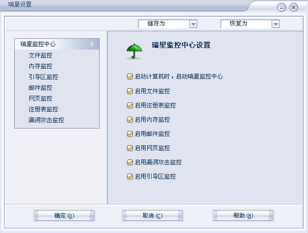 瑞星里是不是没设置开启全部监控?