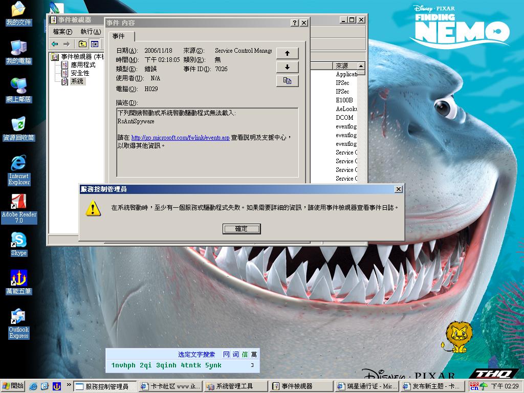 今天看到瑞星說卡卡有多強,之後我就在瑞星網站并安裝了卡卡助手,但安裝失敗,安裝了好幾次都失敗,之後重啟就說系統啟動時有一個服務或驅動程式失敗。。看圖,我的系統是繁體2003標准版+sp1的,請問怎么樣解決這個問題[img][/img]