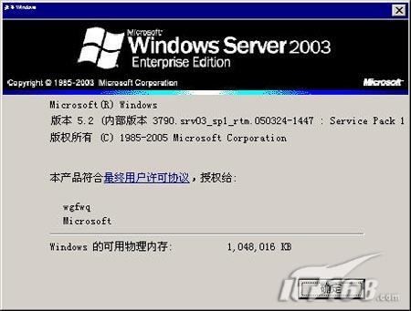 Exchange 2003要求安装在Windows 2000 serverSP3或更高版本及Windows 2003 server上,在Windows的【开始】的【运行】里键入查看版本的命令:winver,弹出如下窗口。