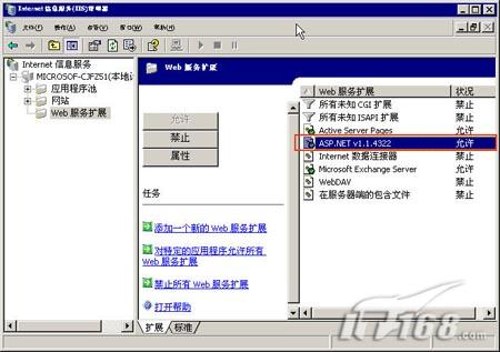 除此之外确认ASP.NET组件已经正常工作,在IIS的【Web服务扩展】中查看ASP.NET是否已经允许。如下图;