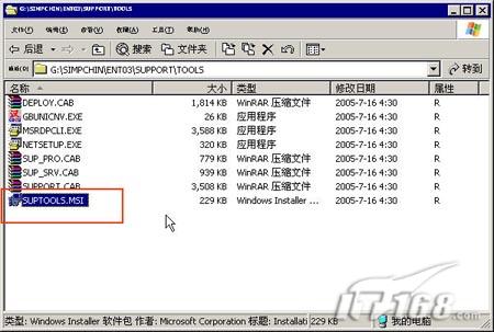 然后安装Windows支持工具,这些工具在后续步骤中会用到,在Windows2003操作系统光盘下的SUPPORT TOOL文件下TOOL的文件夹下点击SUPTOOLS.EXE。