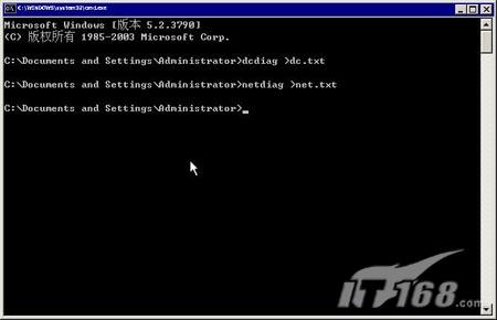 在DOS环境下用dcdialg工具检测活动目录的运行情况,如下图,用netdiag工具检测网络环境运行状况,如下图: