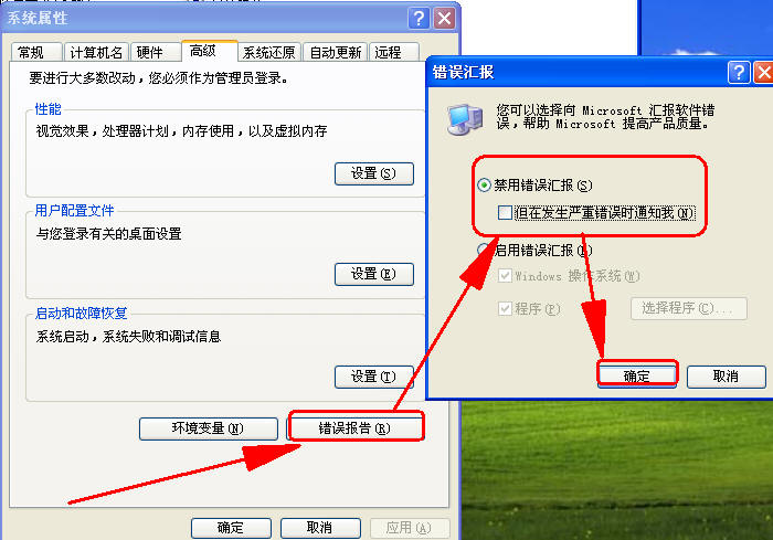 ①试试在“开始”→“运行”→输入“%WINdir%\system32\Com\comexp.msc”打开“组件服务”在“服务(本地)”项里找到“Error Reporting Service”将它设置为“禁止”