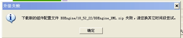 说下载新的组件配置文件BDEgine/18_52_22/BDEgine_XML.zip 失败,请您换其它时段尝试
