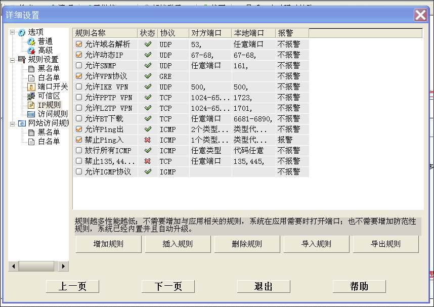 PING不完全是坏的,PING一般用于检测对方机器是否开机、域名解析等等。如果你禁止了PING出,那么这两个功能就无法使用了。