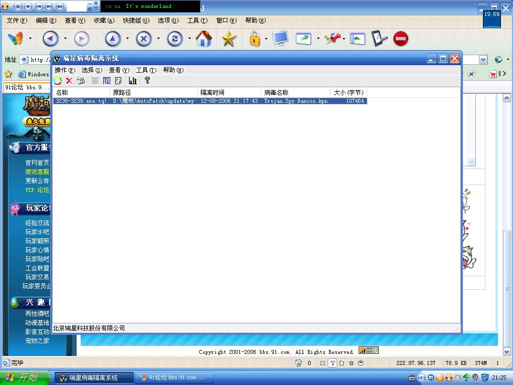 【讨论】瑞星2007版居然将(魔域)游戏当做病毒杀?