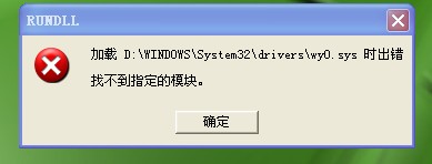 "加载D:\windows\system32\drivers\wy0时出错找不多指定的模块" 请问一下这是什么意思?今天开机之后,每次开机就有这个了~~有高手能解释一下,说说怎么解决吗?