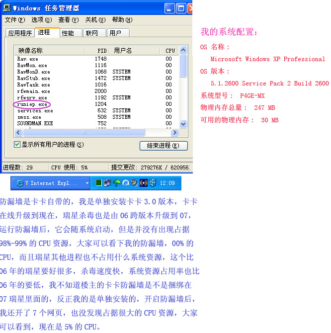 防漏墙开启后居然占据了98%-99%的CPU资源,电脑比286还慢。
