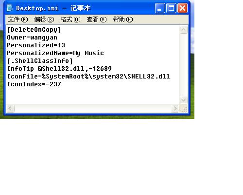 首先用“资源管理器”进入出现问题的文件夹,然后在地址栏输入:\desktop.ini,回车后系统会用“记事本”打开这个文件。